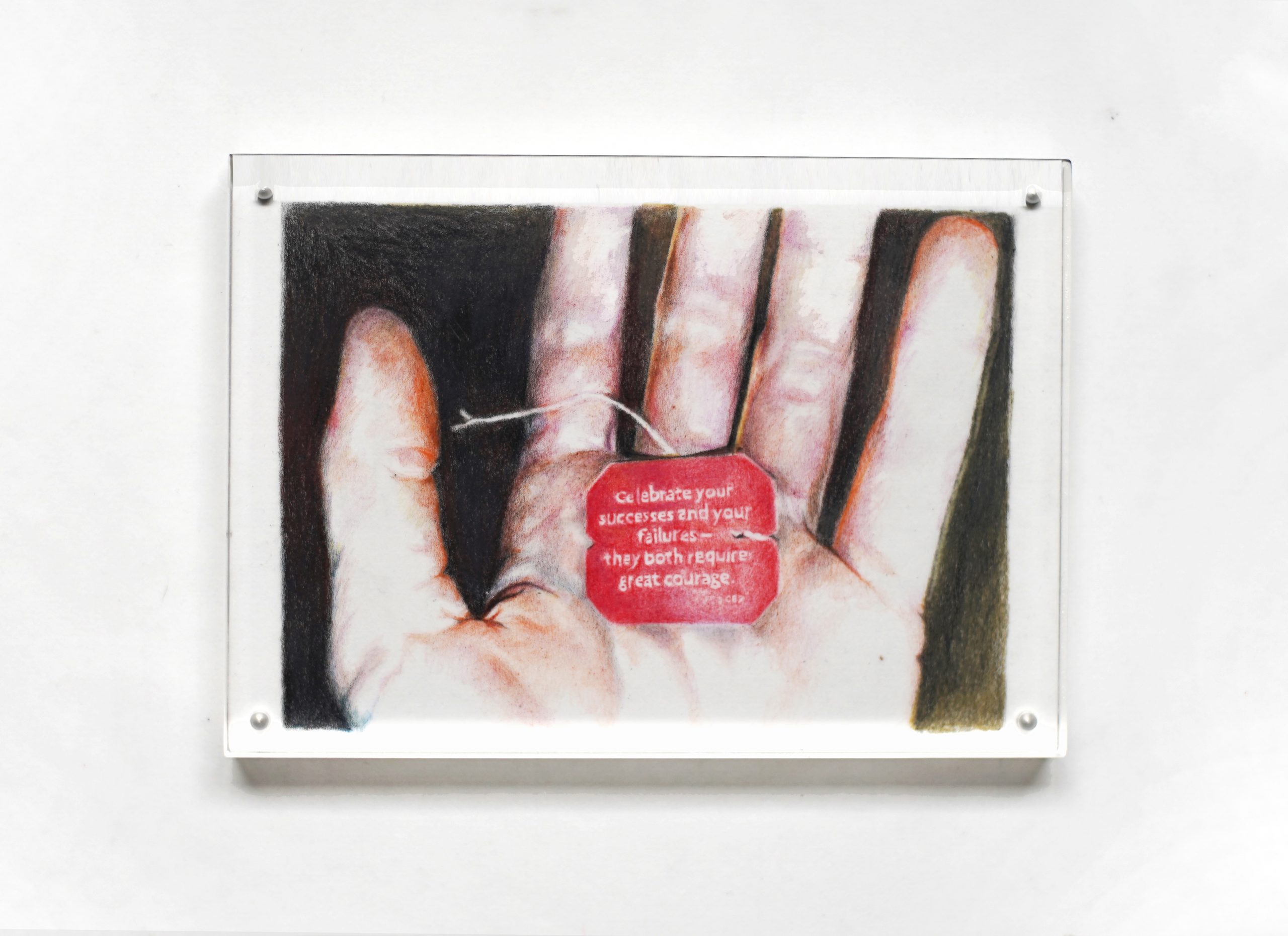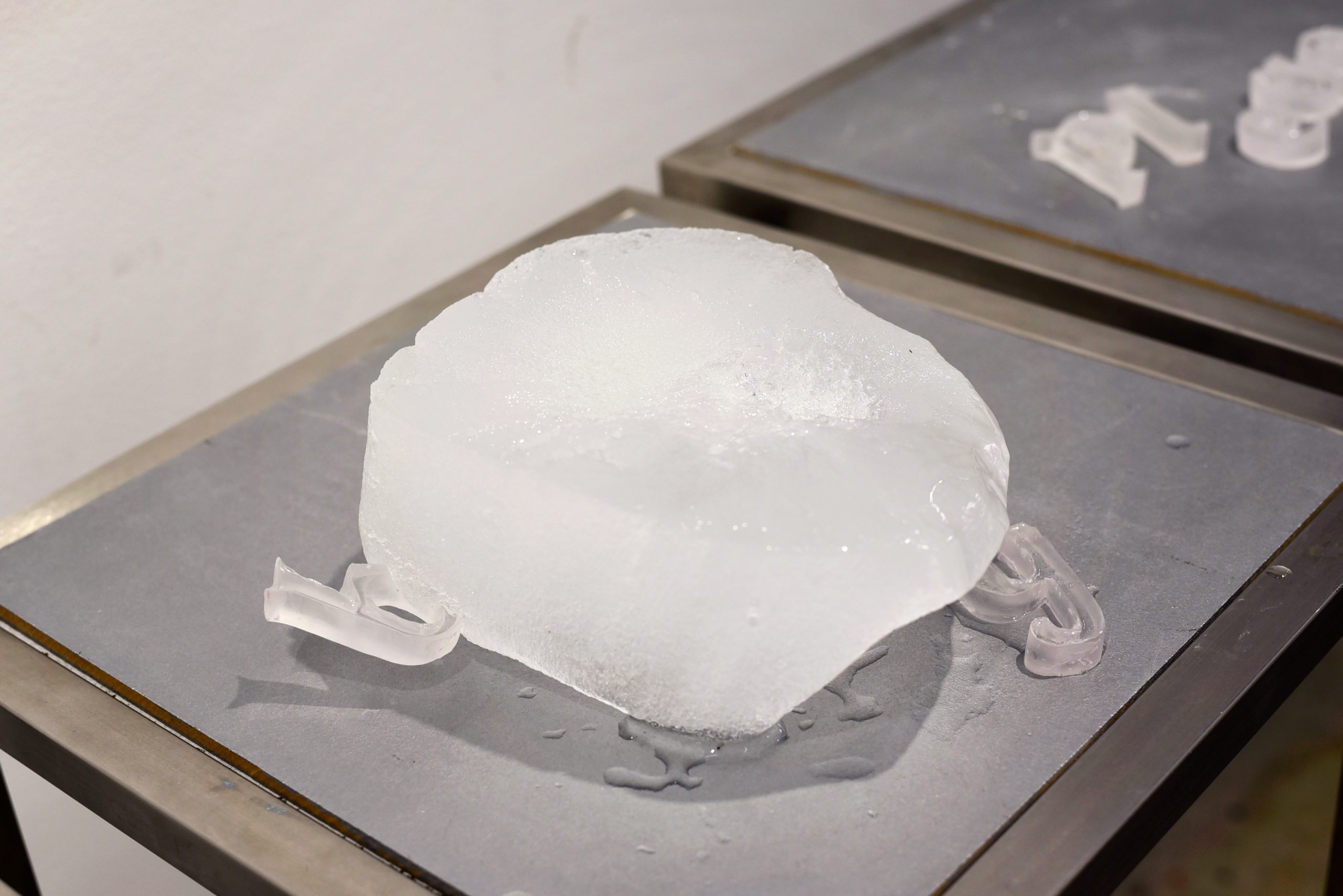 hielo, silicona, papel(texto), acetato y metal