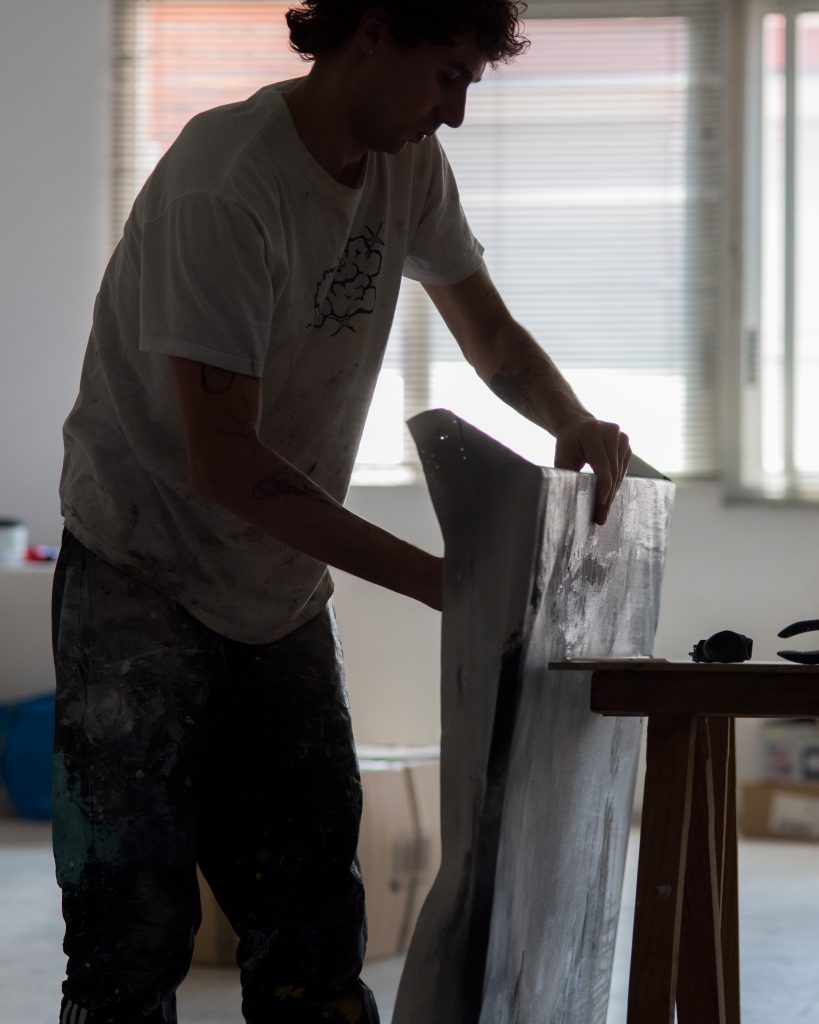 Entiendo la pintura como una puerta de entrada a un enfoque plástico de composiciones infinitas y equilibrios gráficos. Me interesa buscar caminos sucios y marginales, muy alejados de la pintura convencional.