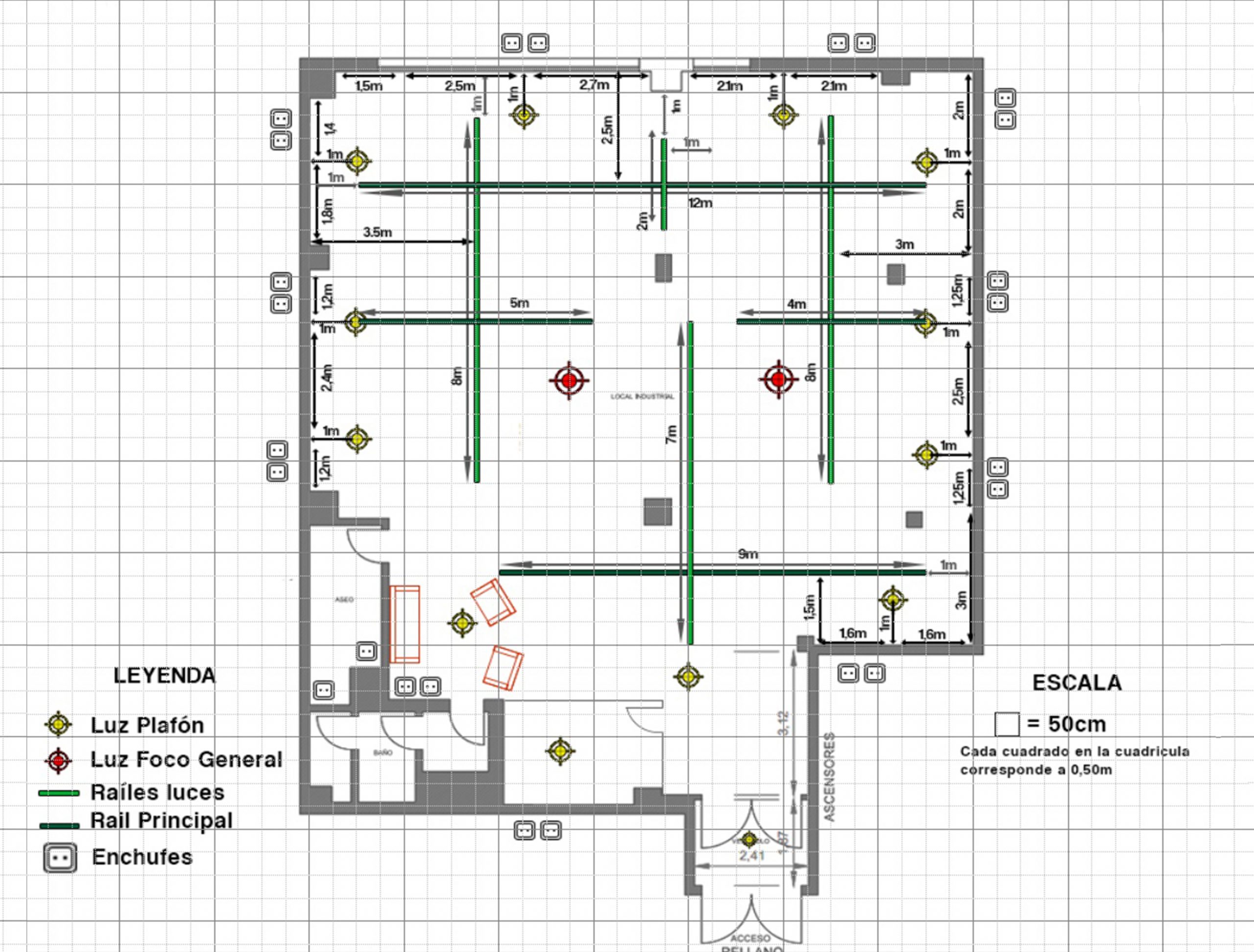 Para ello, contamos con veinte paneles móviles de 210cm de ancho x 250cm de alto, que se distribuyen en función de las necesidades del momento.