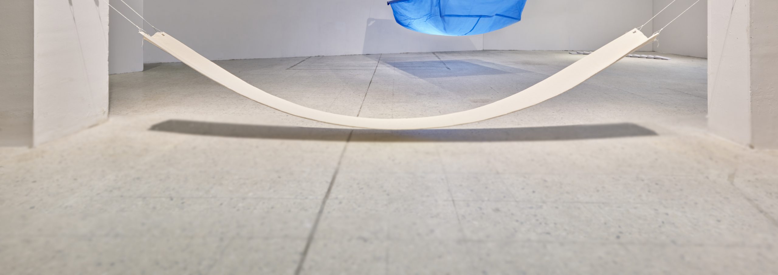El horizonte no es un límite fijo, sino una apertura huidiza, escribe G.Didi-Huberman. En Cuando el cielo está nublado, el sol no quema, esa línea imprecisa se convierte en un lugar intermedio que contiene tanto el peso como la liviandad del acto de pintar, en huecos que resaltan el reposo, la disposición de un cuerpo tendido.