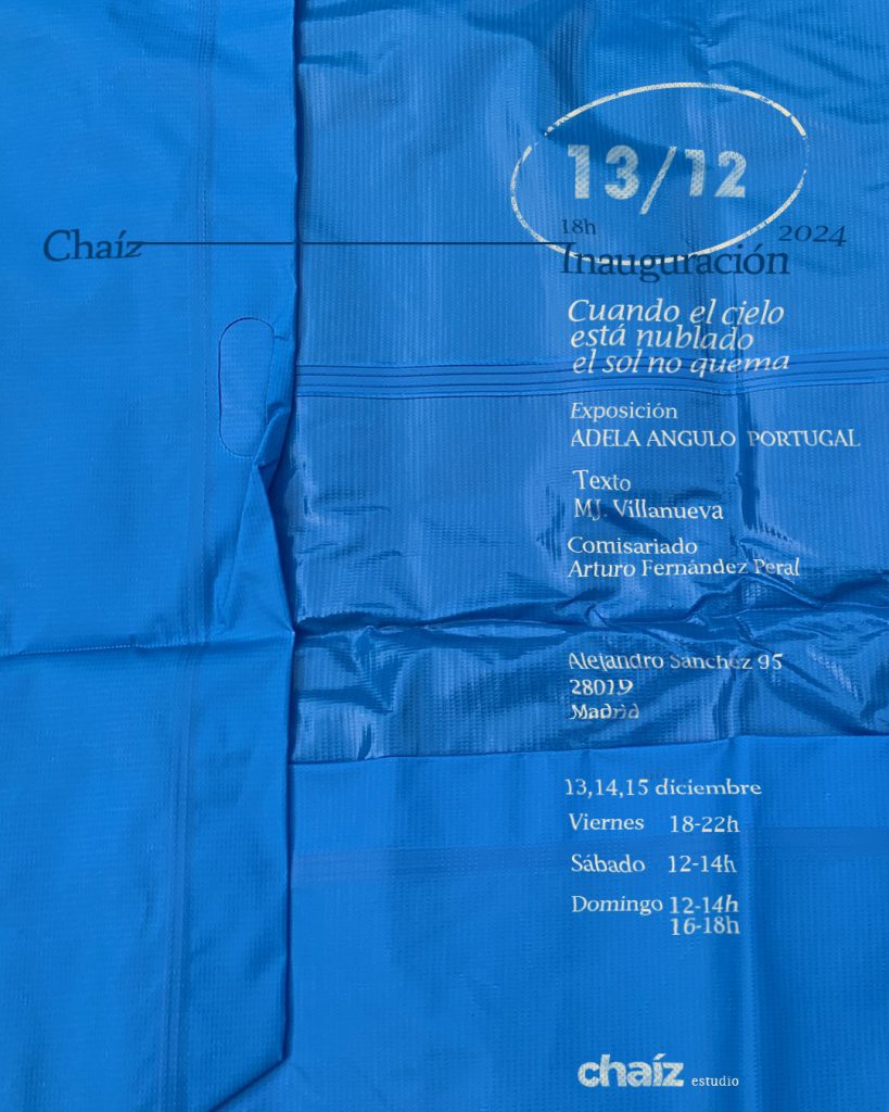 Presentamos: Cuando el cielo está nublado el sol no quema, una exposición individual de Adela Angulo Portugal (@adelaanguloestudio) que tuvo lugar los días 13, 14 y 15 de diciembre de 2024.