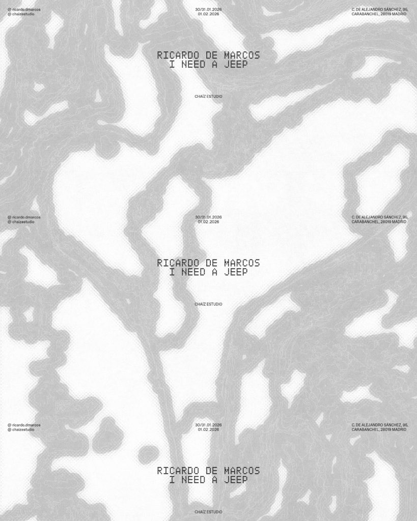 Presentamos: I Need a Jeep, una exposición individual de Ricardo de Marcos (@ricardo.dmarcos) que tuvo lugar los días 30, 31 de enero y 1 de febrero de 2026.