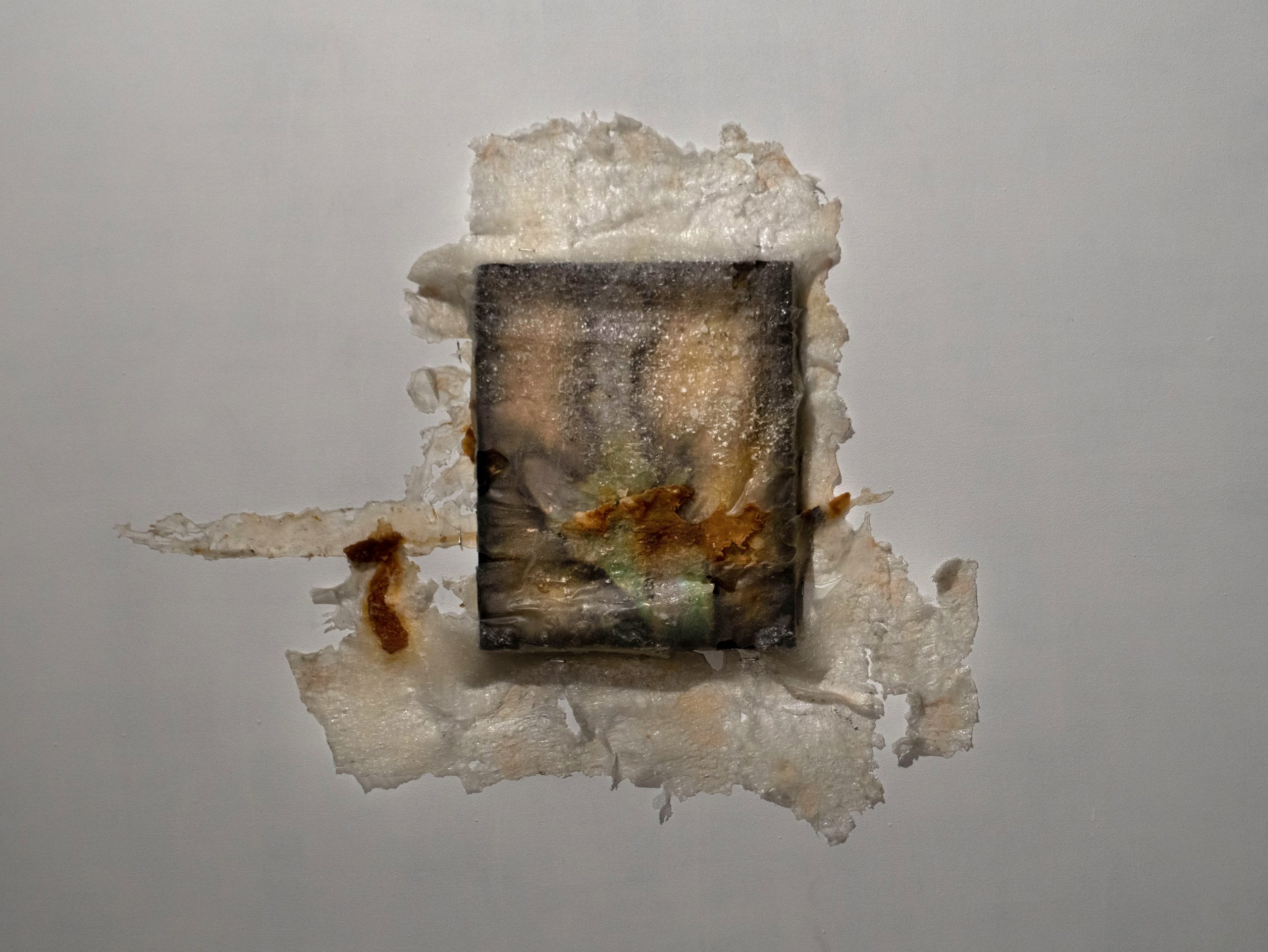 Dos piezas envueltas en látex, parafina y papel de burbujas, un material que a menudo protege piezas de arte u objetos, y que en esta ocasión he querido expandir en una simbología de la piel.