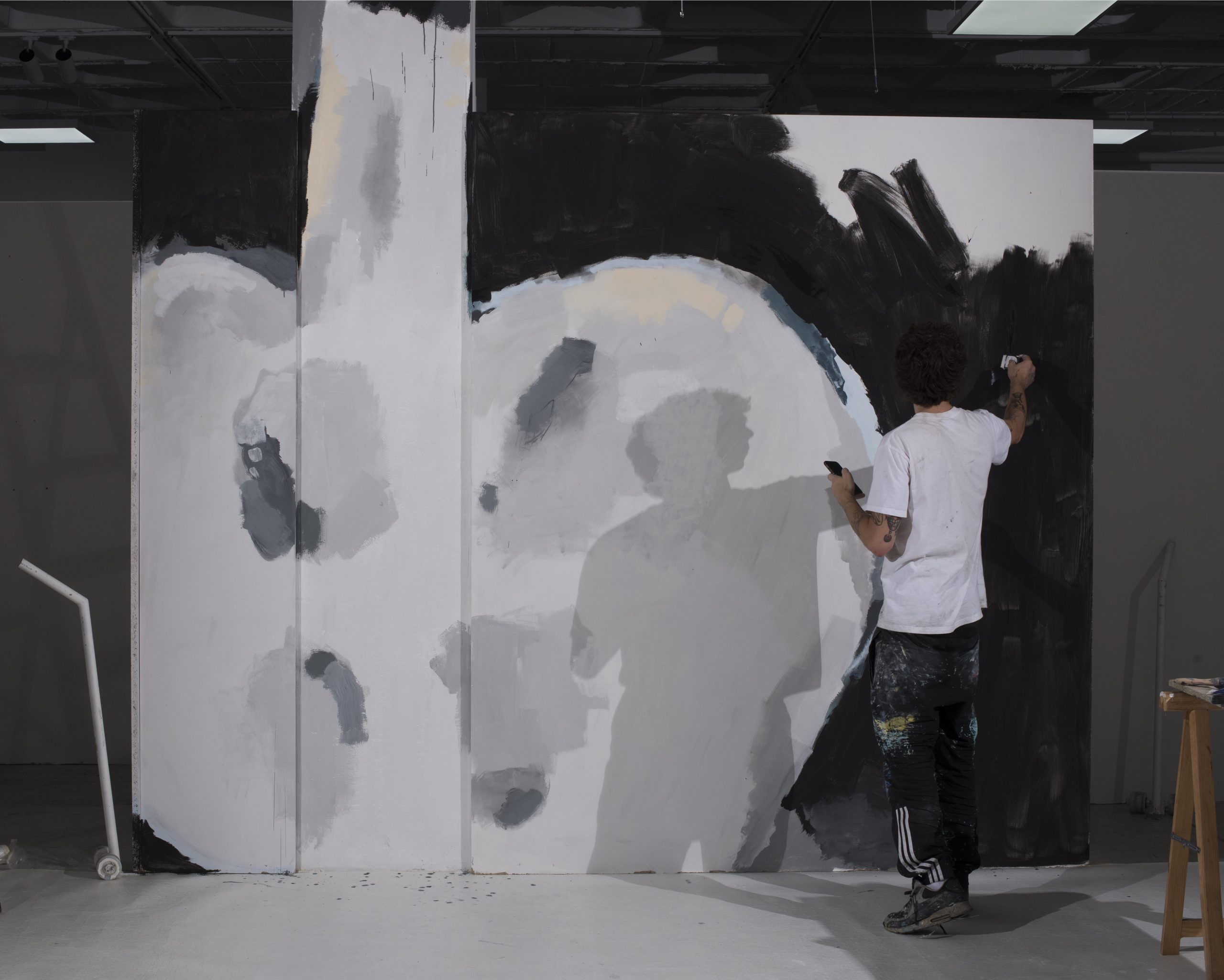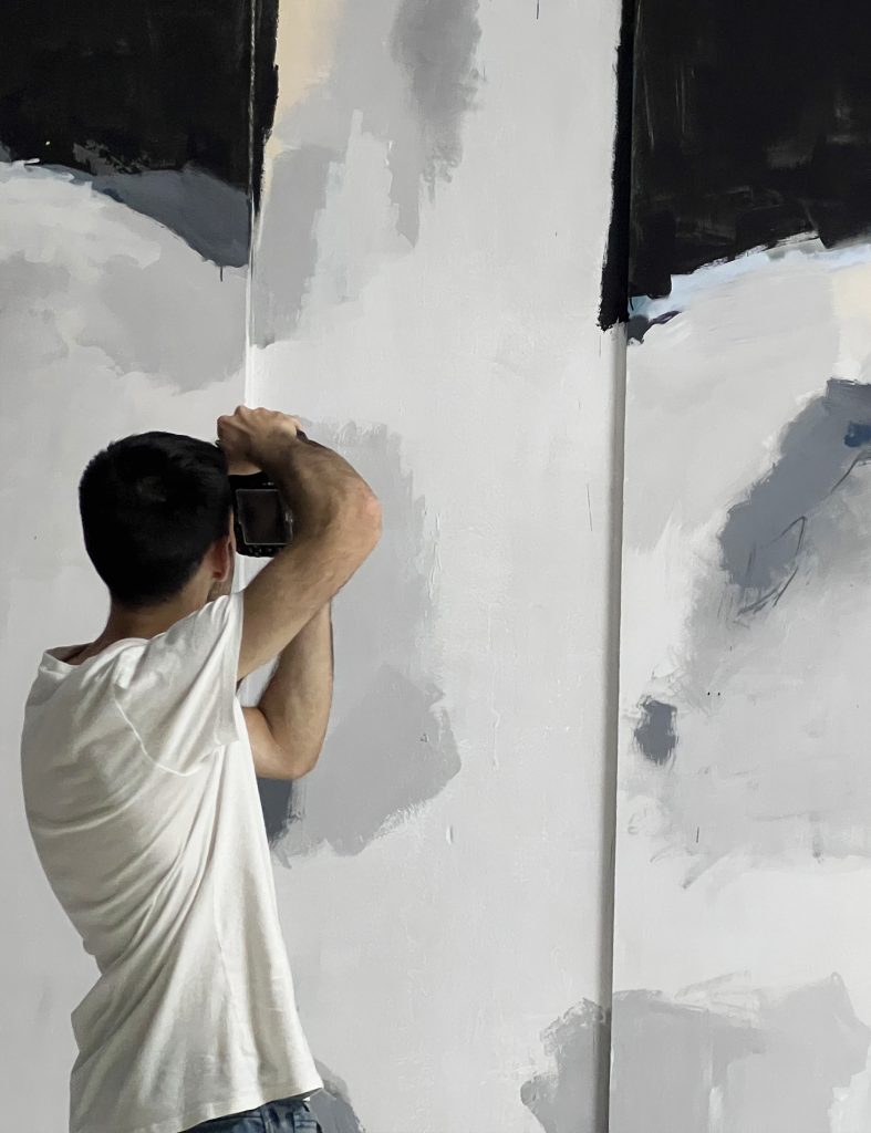 Presentamos la intervención pictórica de Ricardo de Marcos y Diego P. de la Cruz, realizada el 10 de junio de 2025. El resultado final expuesto es fruto del trabajo de ambos artistas, tanto la acción en los paneles y columnas del espacio, como su captura gracias a la fotografía.